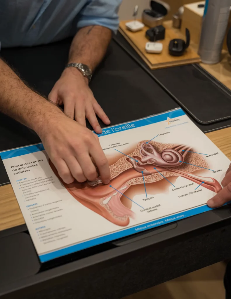 Notre audioprothésiste va observer vos oreilles afin de s’assurer que tout va bien. Les résultats vous seront ensuite expliqués si vous le désirez.
